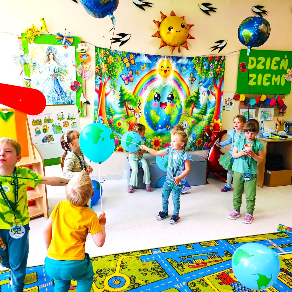 Przedszkolaki z oddziału „0A” w czasie zajęć dowiedziały się, jak dbać o środowisko i otaczającą nas przyrodę. Miały okazję porozmawiać o tym, że Ziemia jest jedyną zamieszkaną planetą i jednocześnie naszym domem, więc musimy o nią dbać jak najlepiej potrafimy np. poprzez segregację śmieci i ich recykling, jak oszczędzać wodę i energię, a także podejmowały kreatywne aktywności, takie jak robienie dzieł z recyklingu i eksperymenty przyrodnicze. Próbowały ocenić co czuje Ziemia, gdy o nią dbamy, a także jakie emocje odczuwa, gdy jest niszczona.