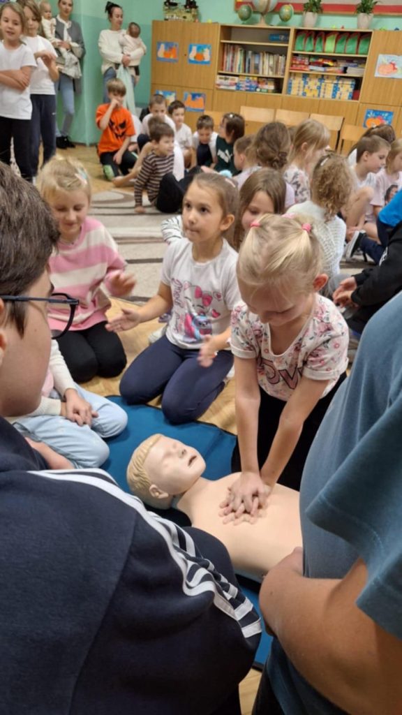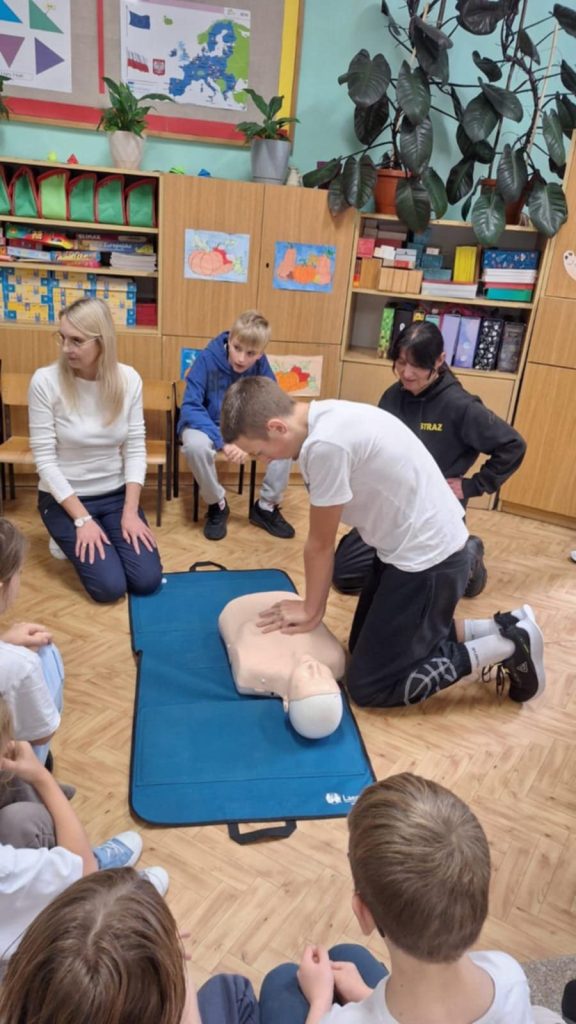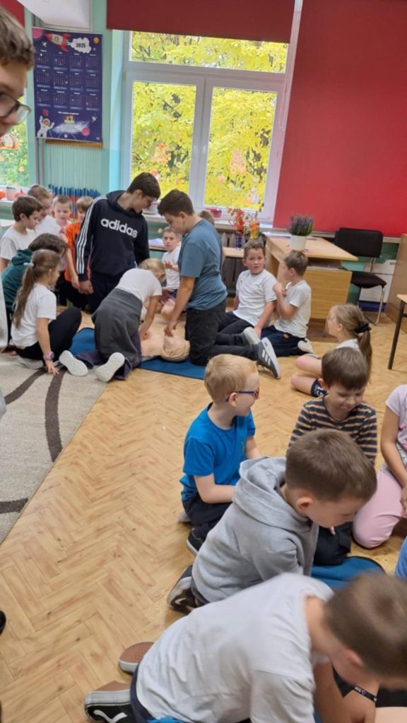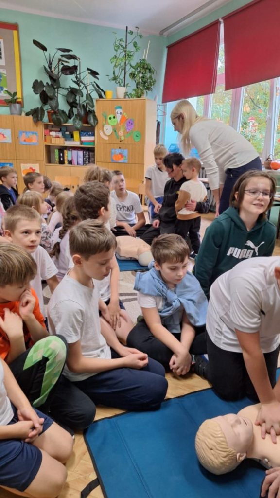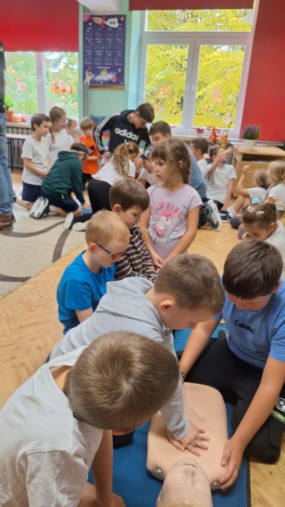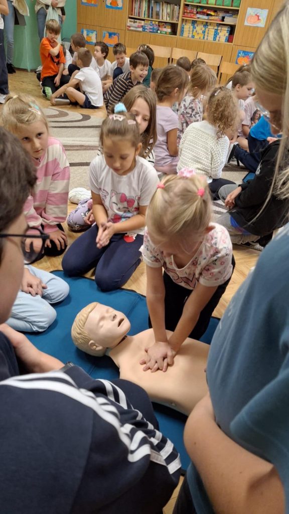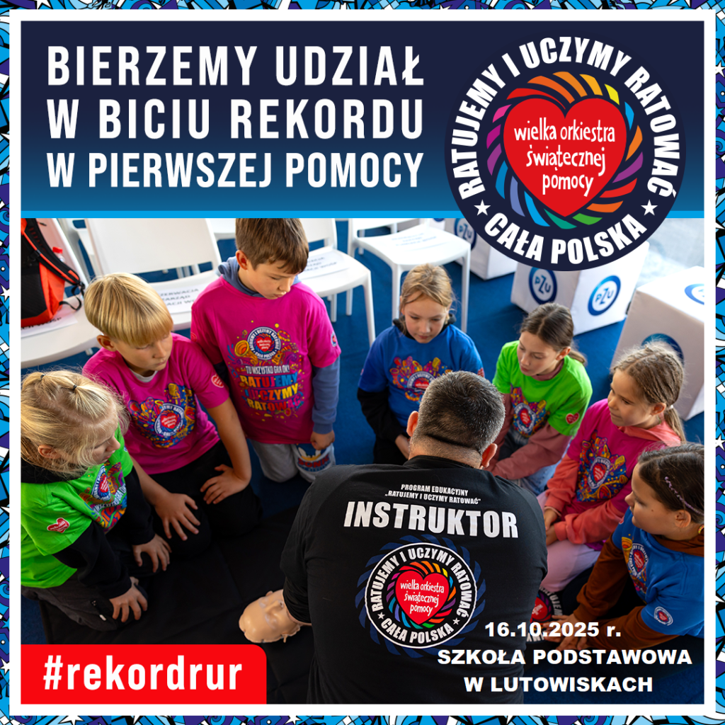 16 października to Europejski Dzień Przywracania Czynności Serca. Najmłodsi uczniowie z naszej szkoły pod czujnym okiem starszych kolegów z Młodzieżowej Drużyny OSP Lutowiska, wzięli udział w ogólnopolskiej akcji Bicia Rekordu w Pierwszej Pomocy. Akcja pod patronatem WOŚP i PZU polega na tym, że pomiędzy godziną 12:00 a 12:30 uczniowie bez przerwy prowadzą resuscytację krążeniowo oddechową na fantomach. W tym roku chęć udziału w biciu rekordu zgłosiło ponad 150 tysięcy osób- w tym MY Szkoła Podstawowa w Lutowiskach. Nasi uczniowie już od pierwszych klas szkoły podstawowej pod opieką Pani Haliny Żołądź oraz ratowników z OSP w Lutowiskach uczą się, jak prawidłowo udzielić pierwszej pomocy przedmedycznej. To bardzo ważna umiejętność którą każdy powinien mieć w małym paluszku.