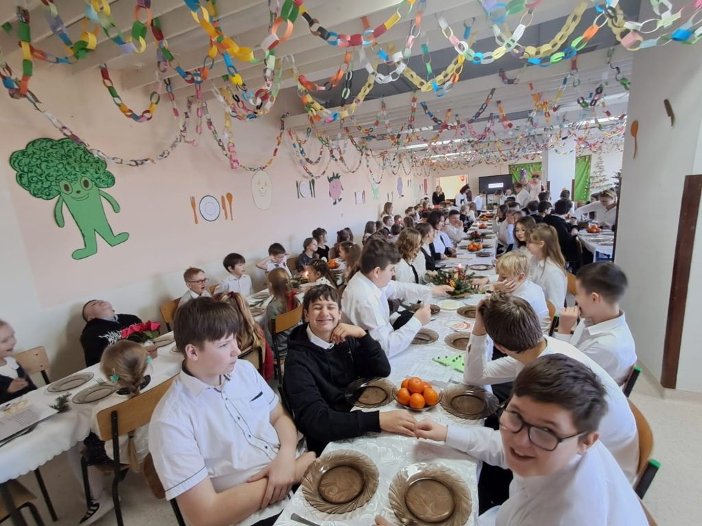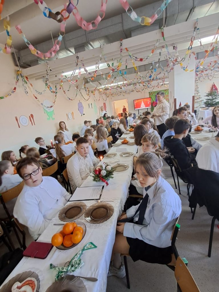 Cała społeczność szkolna spotkała się przy wspólnym opłatku 🤍, by w atmosferze radości i wzajemnej życzliwości złożyć sobie świąteczne życzenia. Towarzyszyło nam wspólne śpiewanie kolęd 🎶, uśmiechy 😊 oraz chwile, które na długo pozostaną w naszej pamięci.