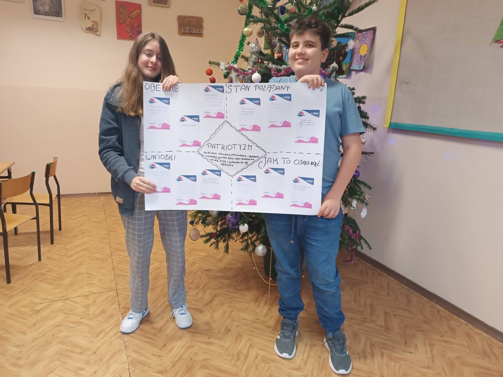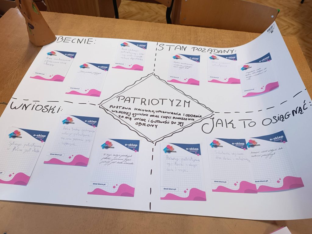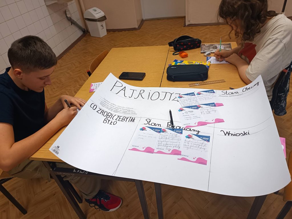 - dyskusję na temat patriotyzmu oraz wartości w twórczości Antoniego Słonimskiego. Praca metodą metaplanu była strzałem w dziesiątkę!Wybrane zadania realizowano w klasie VII i V . Wszystkim uczniom należą się podziękowania za zaangażowanie w dodatkowe działania. Rezultaty Waszej aktywności nie tylko cieszą, ale inspirują do dalszej pracy!