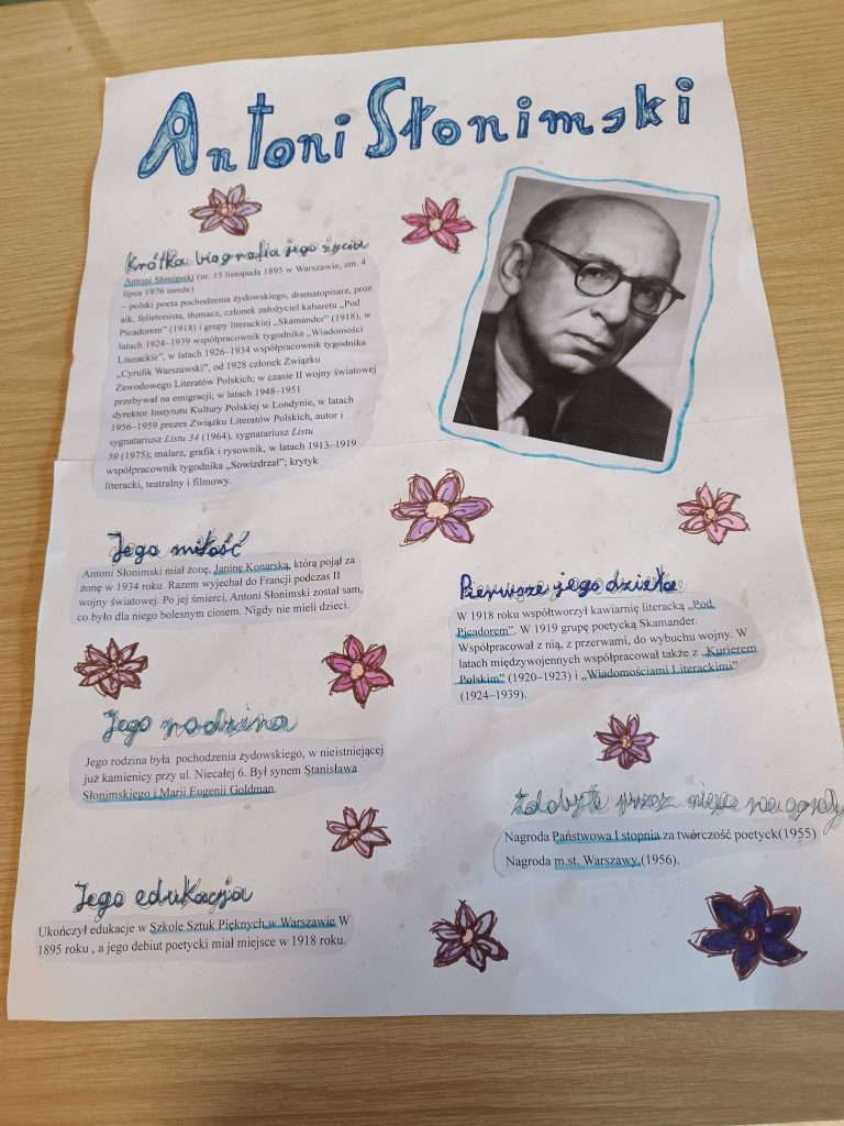 Uczniom naszej szkoły udało się zrealizować wszystkie zadania przewidziane w ramach ogólnopolskiego projektu edukacyjnego „Antoni Słonimski dla Młodych”: